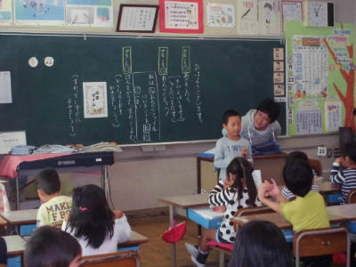 「くじらぐも」の音読発表会。だれがどの役をやるのか相談したり上手に読めるように練習したりしています。