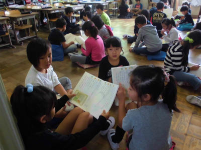 1・2・3年生は、おはなし会の皆様による読み聞かせの時間でした。