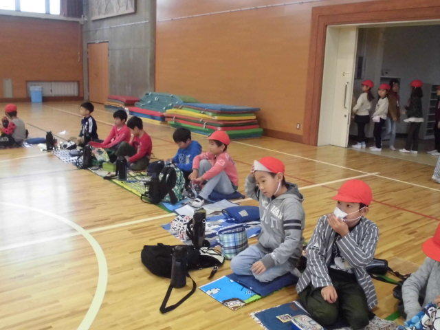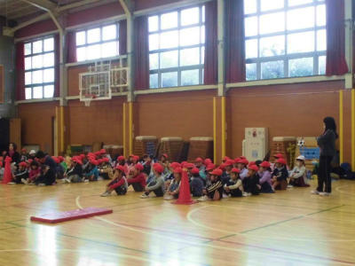 1年生の校外学習は、天候等の関係で中止になりました。体育館で玉入れ、リレーなどを行った後は、体育館で、1年生みんな一緒にお弁当をいただきました。学校の近くの公園に行けることを楽しみにしながら、仲良く活動しました。