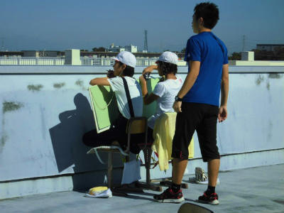 6年生 図工 屋上からの風景を描いています。