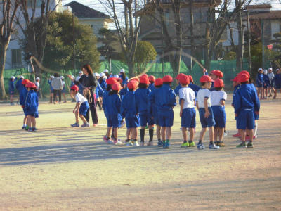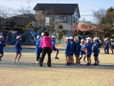 1年生も、跳んだ後、縄の下から離れることを覚えました。