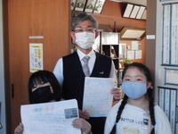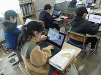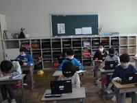 授業の様子です。給食の時間に、卒業生と在校生の代表によるお別れの会(引き継ぎ)をリモートで実施しました。。