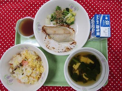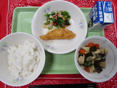 6年2組 卒業リクエスト給食として、ポテトチップスとプリンが付きました。