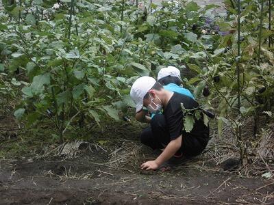 【2年生 生活科】今日もたくさんのお野菜を収穫しました。畑の草取りもしました。
