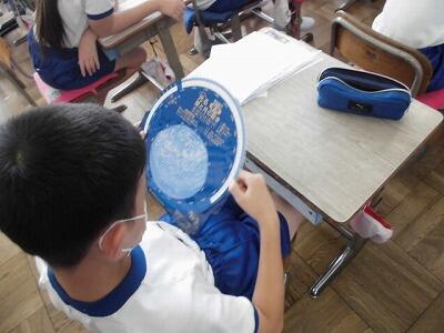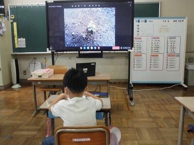【4年生 理科】午前中に豊春小から見えた月の様子を大型モニターで振り返りました。