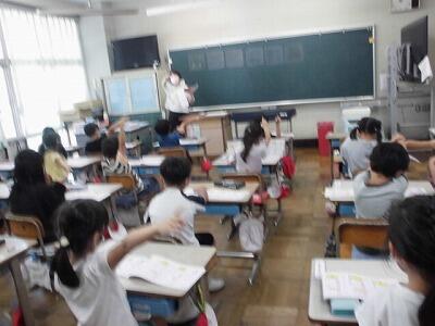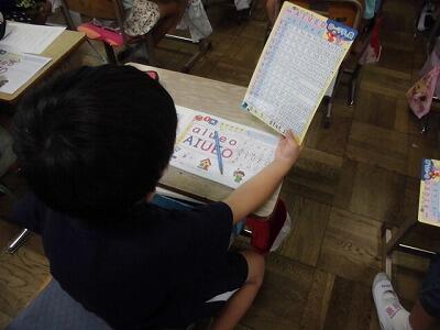【1年生 国語】夏休みの思い出の発表を聞いて、知りたいことを尋ねたり感想を伝えたりしました。
