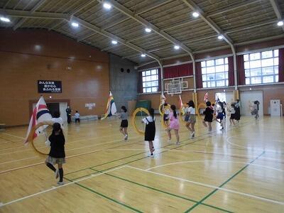 【昼休み】運動会に向けてバトンとカラーガードの児童が練習をしています。