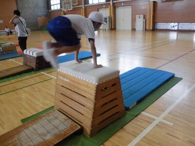 【6年生 体育】跳び箱で、ヘッドスプリングの技にもチャレンジしました。