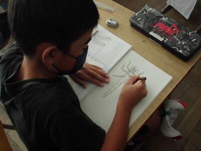 【2年生 図工】タブレットを活用しながら、動くおもちゃの設計図を書きました。