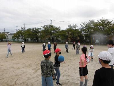 【1・6年生 学活】一緒に陣地取りゲームをしました。1年生の児童は、6年生のお兄さんお姉さんと一緒に活動す