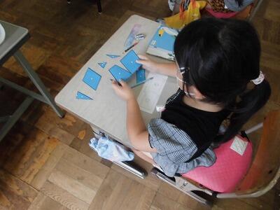 【2年生 算数】三角形と四角形の仲間分けをしました。