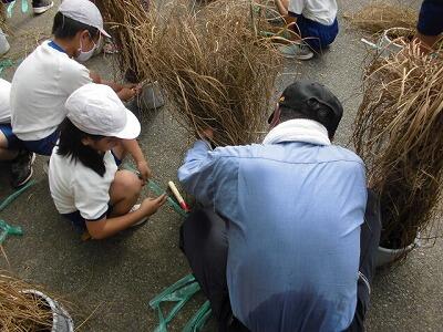 【5年生】学校応援団の方の御協力をいただきながら、バケツで育ててきたお米を収穫しました。