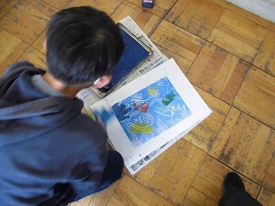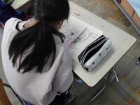 【4年生 図工】版画の下絵を、トレーシングペーパーを使って、版木に写しました。