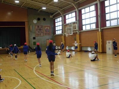 【体育朝会】2学期の終盤は、雨天で実施できなかった体育朝会を実施しました。長縄跳びの練習をしました。