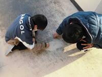 【4年生 体育】強く、冷たい風が吹く中でも、元気に長縄跳びの練習をしています。
