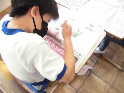 【1年生 国語】「くじらぐも」の教室掲示づくりを行いました。