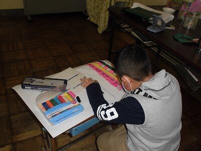 4年生の図工です。個性豊かに、創造していろいろな色を使って作品を仕上げていました。