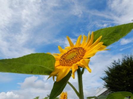 青空に向かって咲く向日葵(ひまわり)です。