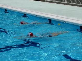 猛暑ですが、プールの中は、快適です。