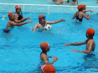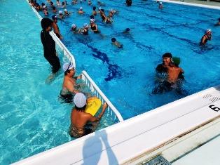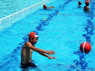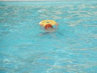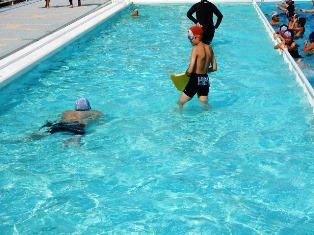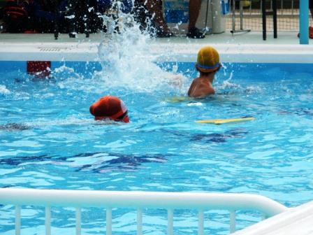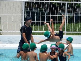 内容は水泳検定です。写真は、フリータイムで楽しく遊んでいます。