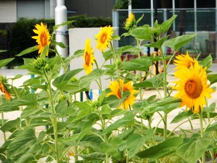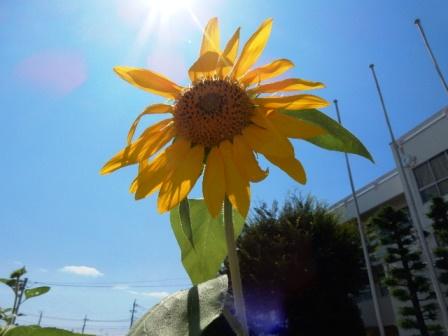 焼け付くような日射しを受けて、元気に咲く向日葵です。いやー、暑いですね。
