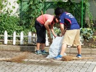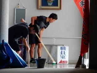 回りの道路を教頭先生始め先生方が朝から清掃しています。