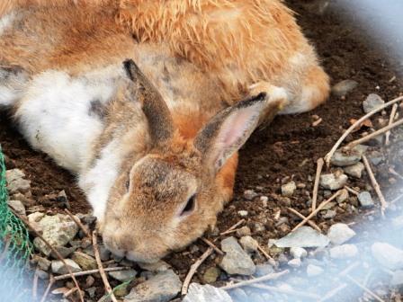 蒸し暑いのか地面に体を密着させているうさぎもいました。
