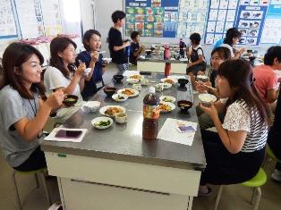 PTA役員の皆さん、5.6年の先生方も料理を食べ、感想用紙に