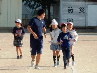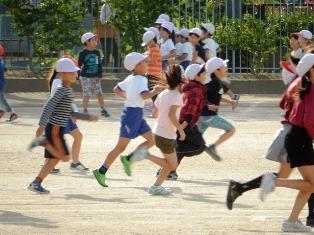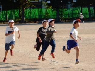 まだ人数が少ない時間帯なので、本気で競争して走る子どもたちです。
