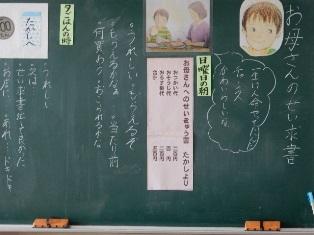 4年生は道徳の授業で、「お母さんのせい求書」の板書です。