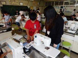 5年生は家庭科の授業で、ミシンでエプロンを製作中です。