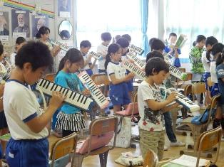 4年生は音楽の授業で、鍵盤ハーモニカで「とんび」を演奏しています。