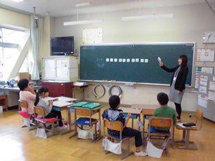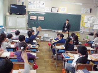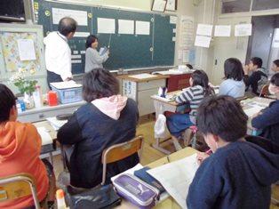 豊春中学校から先生が1名お見えになり、小学校で体験研修を