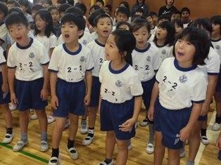 はじめに全員で、「まっかな秋」を歌いました。2年生の表情が