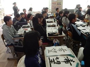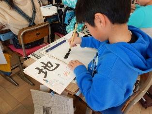 4年生は書写で、毛筆です。筆を立てて書いています。