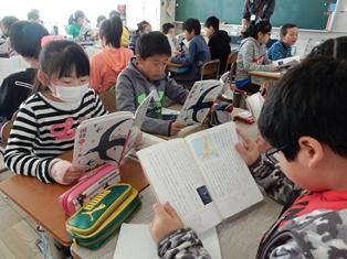 4年生は国語で、「ウナギのなぞを追って」を音読してながら