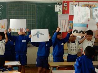 1年生は国語で、新しい1年生におしえたいことを絵にして、