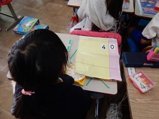3年生、算数で自分で考えた作戦をみんなに発表して、まとめているところです。
