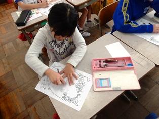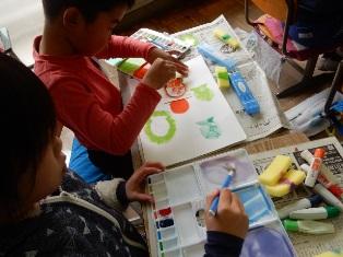 2年生、図工の様子です。一人一人、絵のつけ方を工夫しています。