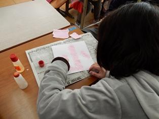 こちらも1年生で、ありがとう集会で渡すお手紙を書いています。