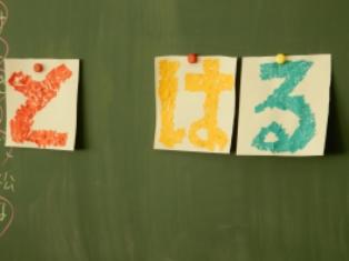 2年生、算数の大きな数で、みんな手を挙げて発表しようとしています。