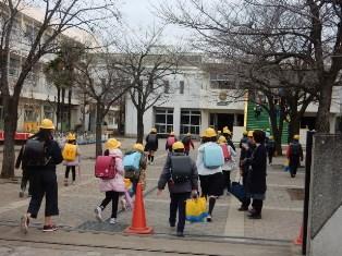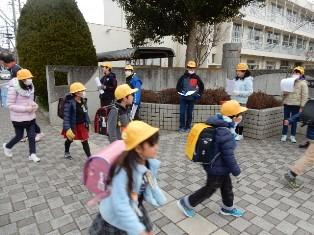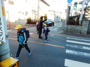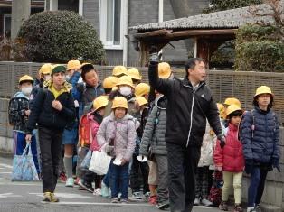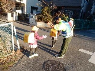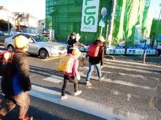 今日も保護者や地域の方々、交通指導員さんに見守られ、