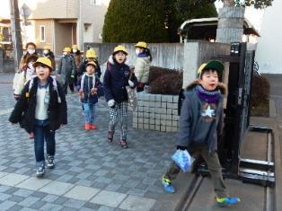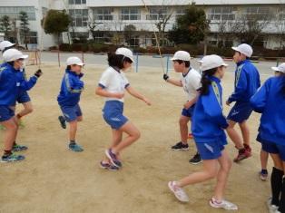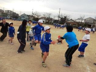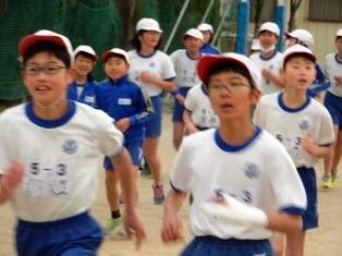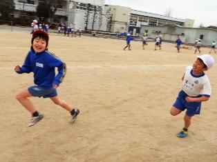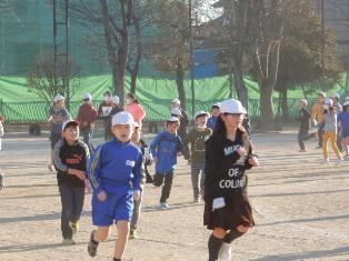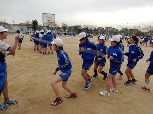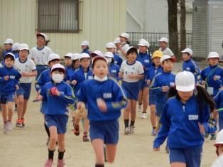 寒さのなか、朝マラソンで体をきたえる子どもたちです。