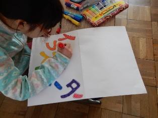 4月に入学してくる保育園・幼稚園児を迎える会の準備をしています。