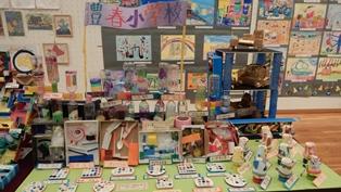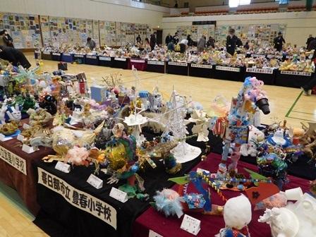 豊春小学校の子どもたちの作品です。冬休み前から、展覧会の直前まで、とにかく