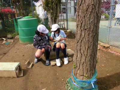 水を入れた土を混ぜています。久しぶりにどろんこ遊びだ!と言っている子も。