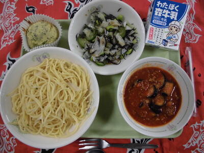 7月9日(木)本日の給食 春日部野菜で作るボロネーゼ風パスタ 美味しかった!