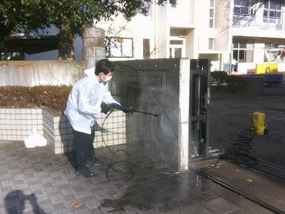 春日部市の職員の方々にご来校いただき、校門周辺を高圧洗浄機などを使ってきれいにしていただきました。汚れが落ち、見違えるように明るくなりました。