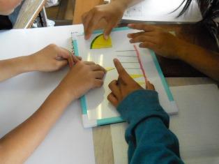 消しゴムがない子に、優しく声を掛け、貸していること。