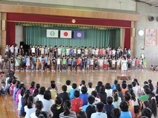 今日は、さわやかタイムの時間に、明日の陸上大会の壮行会を行いました。